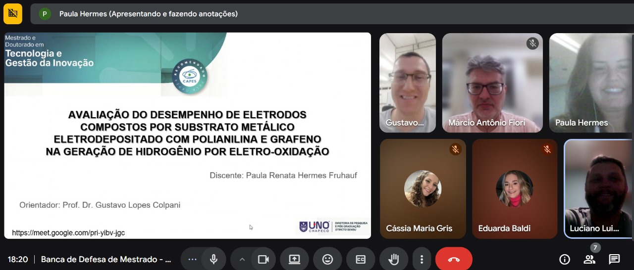Título da dissertação: Avaliação do desempenho de eletrodos compostos por substrato metálico eletrodepositado com polianilina e grafeno na geração de hidrogênio por eletro-oxidação