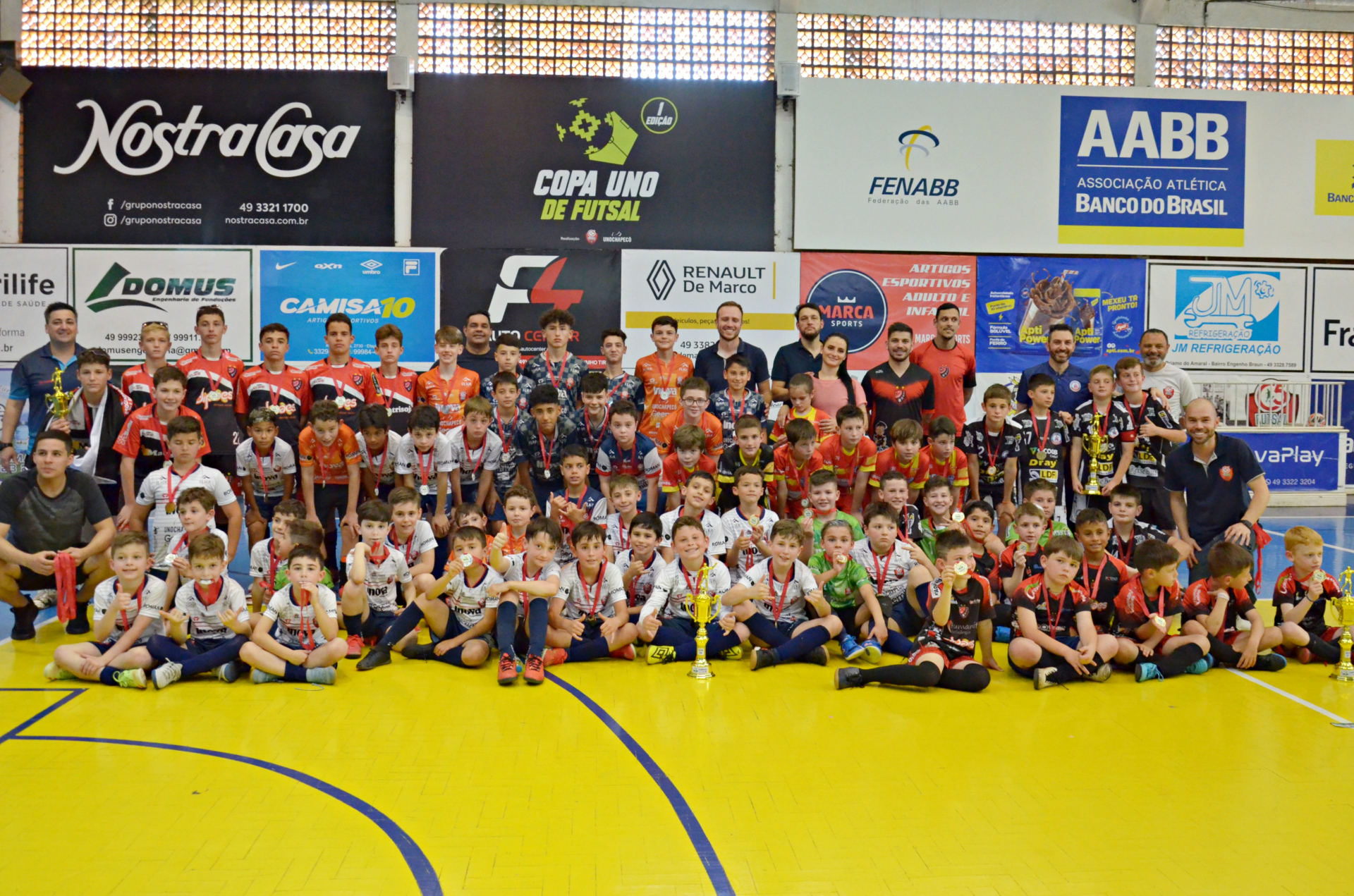 Chegou ao fim a primeira edição da Copa Uno de Futsal, em parceria com a equipe C5/AABB. No último final de semana, entraram em quadra as equipes das categorias ímpares em disputa: sub-7, sub-9, sub-11 e sub-13. Os jogos da primeira fase ocorreram ainda no sábado (15), em vários pontos de Chapecó, e as finais aconteceram na tarde de domingo (16), nos ginásios do bairro Santa Maria e da AABB Chapecó.