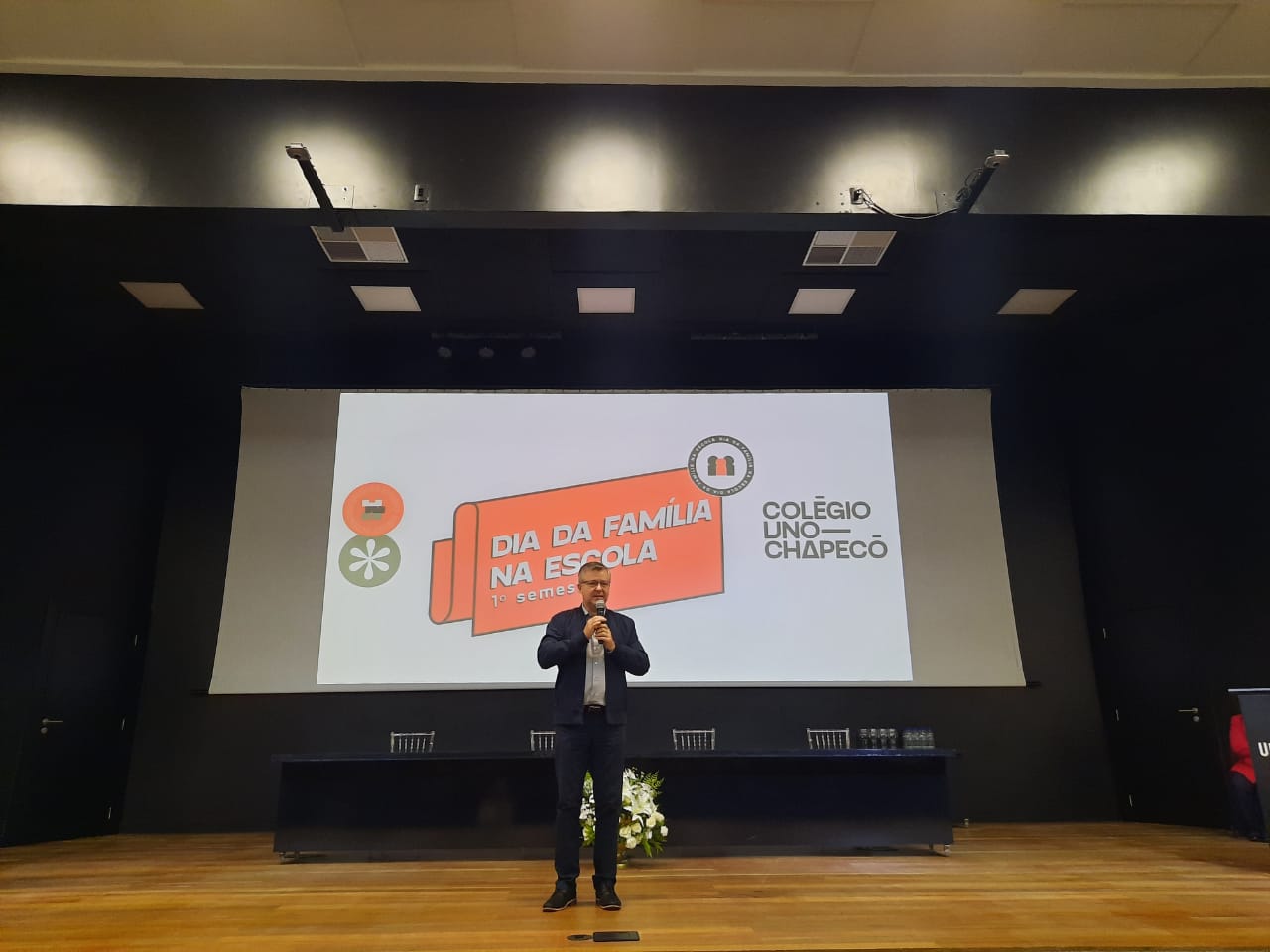 O último sábado (12/06) foi especial para os estudantes, familiares e professores que fazem parte do Colégio Unochapecó. Foi realizado o primeiro Dia da Família na Escola, que teve início no Salão Nobre da Instituição. Um momento para recepcionar as famílias, conversar sobre o colégio e apresentar os professores.