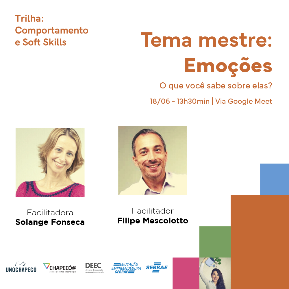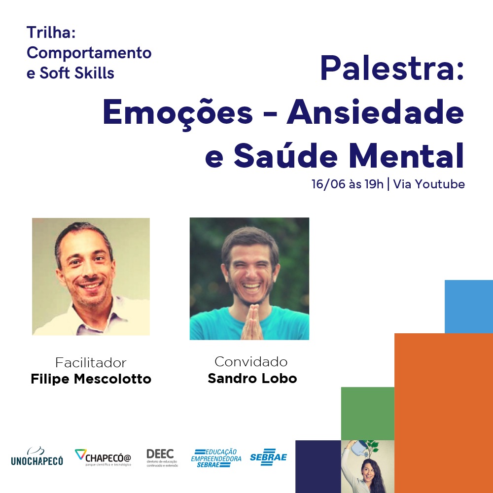 Neste mês de junho estão programadas duas atividades. A primeira acontece na quarta-feira (16/06), com a palestra 'A chave para empreender - Emoções: ansiedade e saúde mental’, a partir das 19h. Já na sexta-feira (18/06), acontece a palestra 'Emoções - O que você deve saber sobre elas', às 13h30.