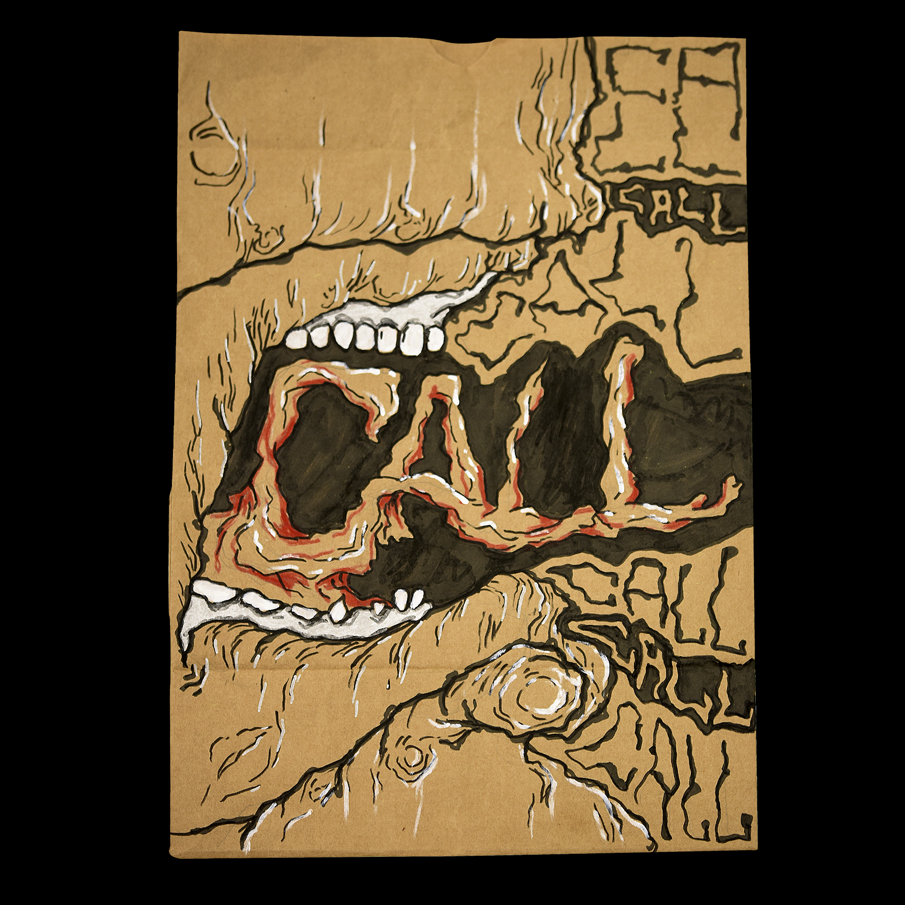“A exposição foi pensada após eu iniciar uma série de desenhos de maneira despretensiosa. No início da pandemia, comecei a utilizar os serviços de delivery quase que diariamente e guardei os papéis pardos das entregas de marmitas. Assim, comecei a utilizar as embalagens para desenhos de uma temática costumeira minha (bocas, figuras e recortes do rosto humano) e partir disso iniciei uma reflexão acerca da repetição oral e escrita também de termos anglicanos e palavras ‘hypados’, os chamados buzzwords, que são muito presentes no contexto da comunicação e em diversos mercados”, explica Henrique.