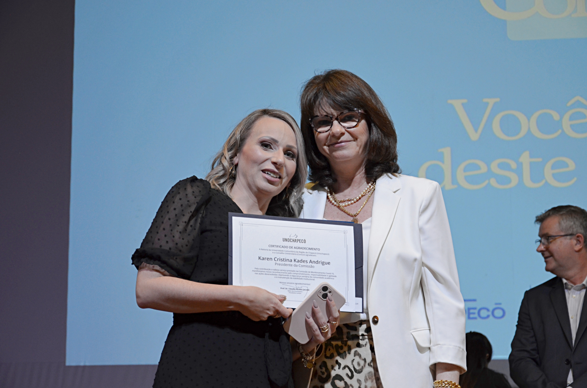 Receberam a homenagem especial as técnicas administrativas e professoras Ana Claudia Lopes Freitas, Camila Bottin, Ellen Guerra, Fabiana Carla Dalla Costa, Fabiane Schonell Roman, Jaqueline Buratti, Karen Cristina Kades Andrigue, Raquel Janaina Buss, Rose Maria de Oliveira Mendes e Taiz Regina Balardin Antonini. Além disso, foram encaminhados os certificados de agradecimento aos funcionários que fizeram parte da Comissão, porém não atuam mais na Unochapecó, sendo eles: Alef Trevisan, Bianca Zancanaro Schneider; Dieison Antonio Corona, Gabriel Wildner Kreutz e Jhonatam Bortolanza.