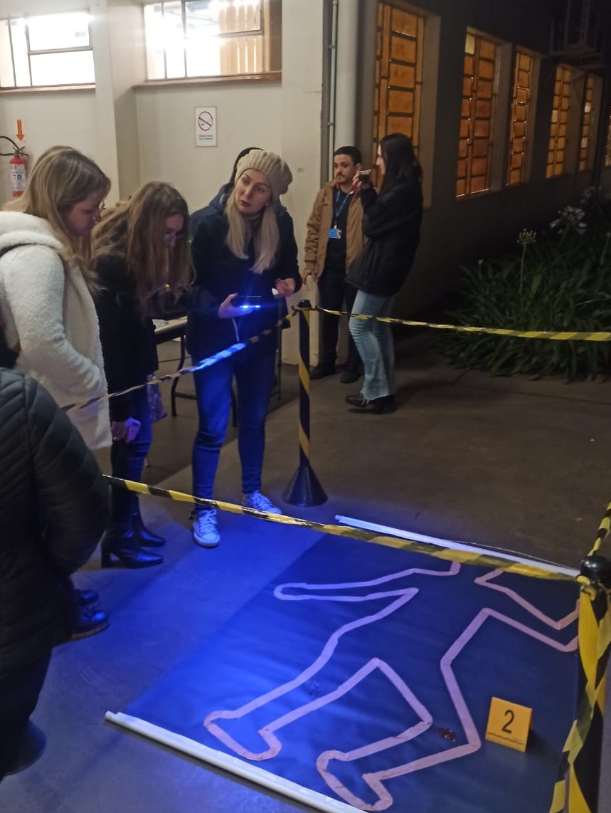 Ainda, em parceria com a Polícia Científica e a Polícia Militar de Santa Catarina, foi realizada ação educativa com simulação de acidente e panfletagem, visando conscientizar sobre os perigos no trânsito e promover ações para redução de ocorrências graves.