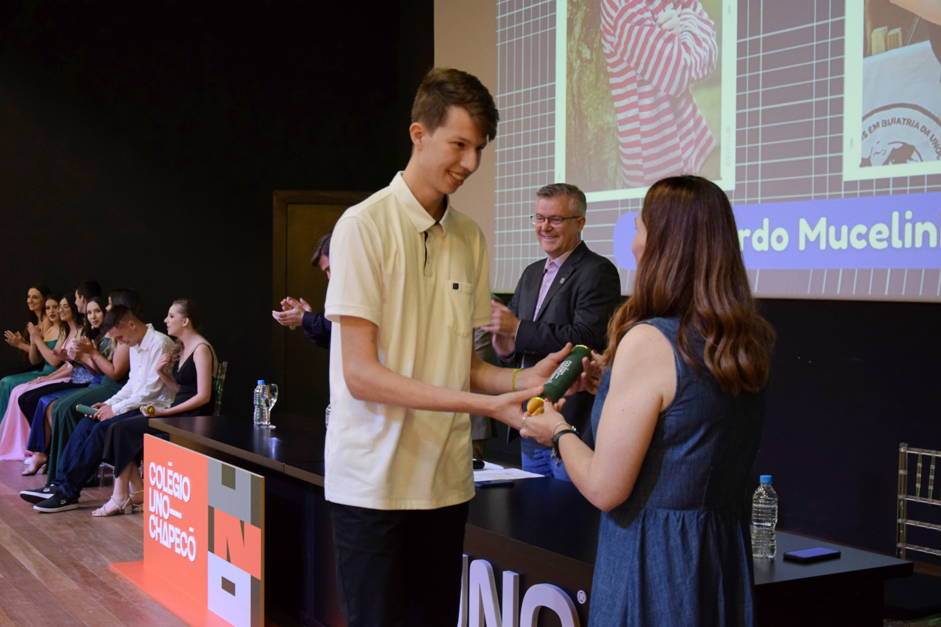 Para o Reitor da Unochapecó, professor Cláudio Jacoski, a formatura da primeira turma do Colégio Uno representa uma nova página escrita na história da Universidade. “Temos uma caminhada bonita de 53 anos, e o projeto do Colégio é um dos mais importantes que a Instituição já teve. Isso porque, de certa forma, nós nos desafiamos e acreditamos em fazer algo diferente pela educação básica no Brasil, com um projeto totalmente inovador, que foi recebido com empolgação pelas autoridades educacionais do Estado. Não tenho dúvida de que acertamos, e tenho certeza de que estes jovens terão um caminho sensacional daqui para frente com o preparo que receberam”, destacou.